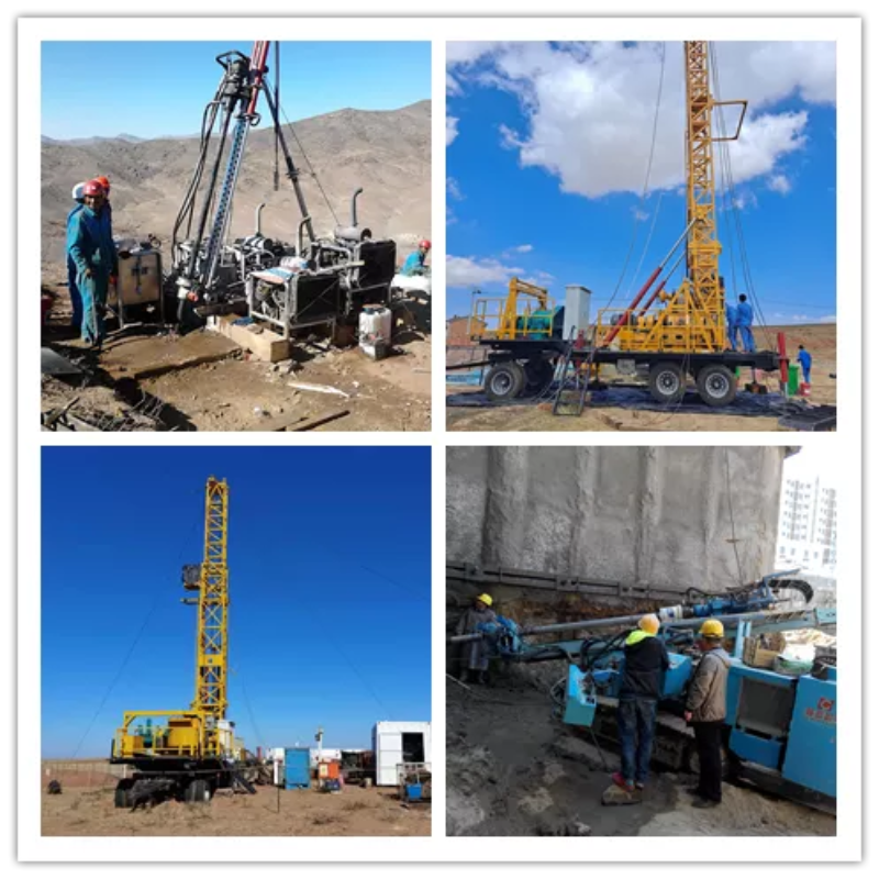 HXY-1600型(機(jī)械動(dòng)力頭長(zhǎng)行程給進(jìn))拖車(chē)鉆機(jī)和HXY-2000智能鉆探機(jī)組,是一款用于砂巖型鈾礦地質(zhì)勘探和開(kāi)采、機(jī)動(dòng)性好、卷?yè)P(yáng)機(jī)提升力更強(qiáng)、鉆探深度更深的新產(chǎn)品。該設(shè)備與國(guó)內(nèi)外同類(lèi)鉆機(jī)相比,在進(jìn)尺速度、上下鉆速度、孔底壓力控制、鉆進(jìn)參數(shù)顯示和控制方面具有顯著的特點(diǎn),杜絕了原鉆機(jī)鉆進(jìn)能力不足、鉆塔承載能力小、鉆塔高度低、輔助工作時(shí)間長(zhǎng)、卷?yè)P(yáng)機(jī)排繩困難、卷?yè)P(yáng)機(jī)操縱費(fèi)力、鉆塔最大負(fù)荷無(wú)法限定等缺點(diǎn),得到了中核集團(tuán)208大隊(duì)、243大隊(duì)、216大隊(duì)、湖南中核勘探有限責(zé)任公司、內(nèi)蒙煤田地質(zhì)局等單位的一致認(rèn)可。