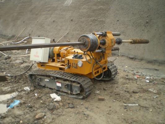 HXY-500履帶式錨桿鉆機是我公司根據(jù)近年來工程建設(shè)需要而專門生產(chǎn)的一種多功能鉆機。它是一種機械傳動、液壓給進(jìn)、履帶行走專門用于工程錨桿施工的新型鉆機,其工藝適應(yīng)性較強,使用范圍廣,應(yīng)用于水文水井鉆進(jìn)、堤壩注漿、樁基孔工程鉆進(jìn),也可應(yīng)用于地表和坑道通風(fēng)、排水工程施工,對固體礦床進(jìn)行金鋼石鉆進(jìn)和硬質(zhì)合金鉆進(jìn)。預(yù)留卷揚機安裝空間,以實現(xiàn)工程及地質(zhì)鉆進(jìn)的不同需要,動力系統(tǒng)可根據(jù)用戶訂貨配備22千瓦電動機或柴油機。(見外型圖1)