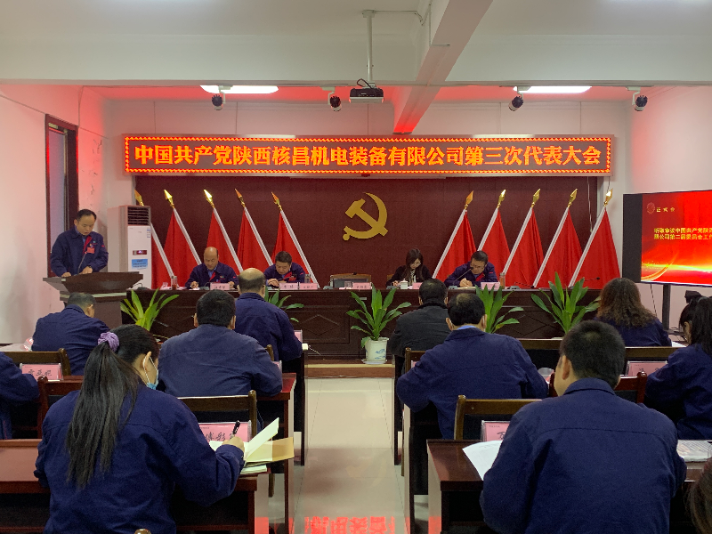 12月9日,中國共產(chǎn)黨陜西核昌機(jī)電裝備有限公司第三次代表大會隆重召開,公司六個黨支部的三十名黨員代表參加會議。集團(tuán)公司機(jī)關(guān)黨委委員、黨委副書記、黨委工作部副部長、團(tuán)委書記治...