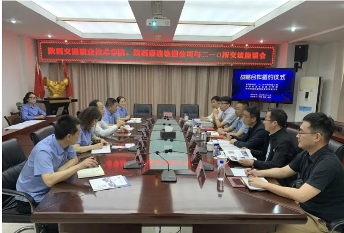 5月24日,陜西交通職業(yè)技術(shù)學(xué)院黨委委員、副院長(zhǎng)劉晶、陜西秦連軌道科技服務(wù)有限公司董事長(zhǎng)孫琪一行到中陜核集團(tuán)二一〇研究所交流座談,并簽署戰(zhàn)略合作協(xié)議。二一〇研究所董事長(zhǎng)王超宏、總經(jīng)理李偉、副總經(jīng)理?xiàng)钇G和相關(guān)部門(mén)負(fù)責(zé)人出席座談會(huì)。