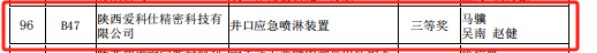 日前,陜西省科協(xié)公布2024年陜西省創(chuàng)新方法大賽評(píng)審結(jié)果,陜西愛科仕精密科技有限公司的“井口應(yīng)急噴淋裝置”項(xiàng)目在此次大賽中榮獲三等獎(jiǎng)。