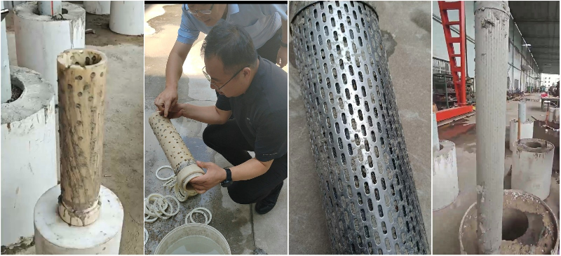 在西安交大電氣學院實驗室,鄒海峰首先參觀了可控沖擊波項目實驗,張琳詳細匯報了項目進展以及取得的階段性關鍵成果:該技術可精準作用于目標區(qū)域,成功使模擬砂巖鈾礦靶塊產生裂隙,且能在保障過濾器完好的情況下實現有效解堵,達到“解堵增隙”的試驗預期。鄒海峰現場觀摩了PVC和金屬過濾器靶塊的實驗過程,通過查看可控沖擊波作用后的過濾器和靶塊前后對比情況,充分肯定了該技術的解堵增隙效果。