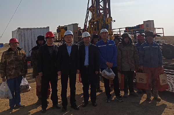 2020年11月13日,黨委書記、董事長王超宏,紀(jì)委書記任中賢前往鄂爾多斯市杭錦旗塔然高勒檢查指導(dǎo)HXY-1600智能型鉆機及NCT-10泥漿不落地裝置試驗工作并慰問參與試驗人員。