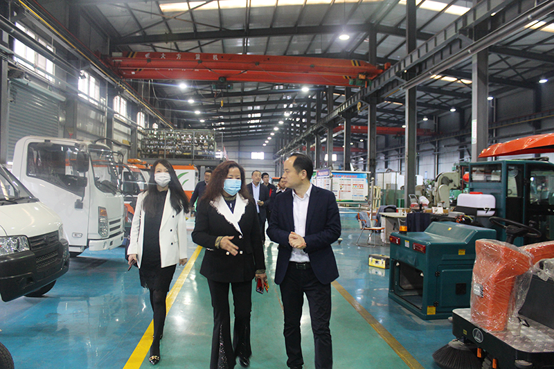 張根鳳董事長一行先行參觀了公司各生產(chǎn)車間,深入現(xiàn)場實(shí)地了解新能源環(huán)衛(wèi)系列清掃車系列產(chǎn)品的研發(fā)、生產(chǎn)及銷售情況,重點(diǎn)對新能源設(shè)備板塊主推產(chǎn)品性能、特點(diǎn)進(jìn)行適用范圍等情況進(jìn)行詢問。雙方在紡織工業(yè)園管委會領(lǐng)導(dǎo)陪同下參觀了咸陽科技產(chǎn)業(yè)園,考察新能源汽車生產(chǎn)車間及相關(guān)企業(yè),并調(diào)研了咸陽市的營商環(huán)境。隨后,在二樓小會議室進(jìn)行座談。
