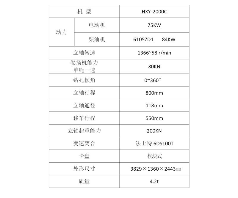 7、動力強大,鉆進能力強,結(jié)構(gòu)上可選配電動機、柴油機,自由度大。電動機75KW,柴油機85KW。