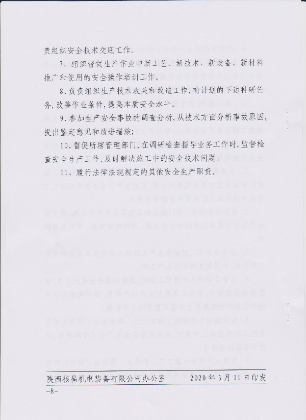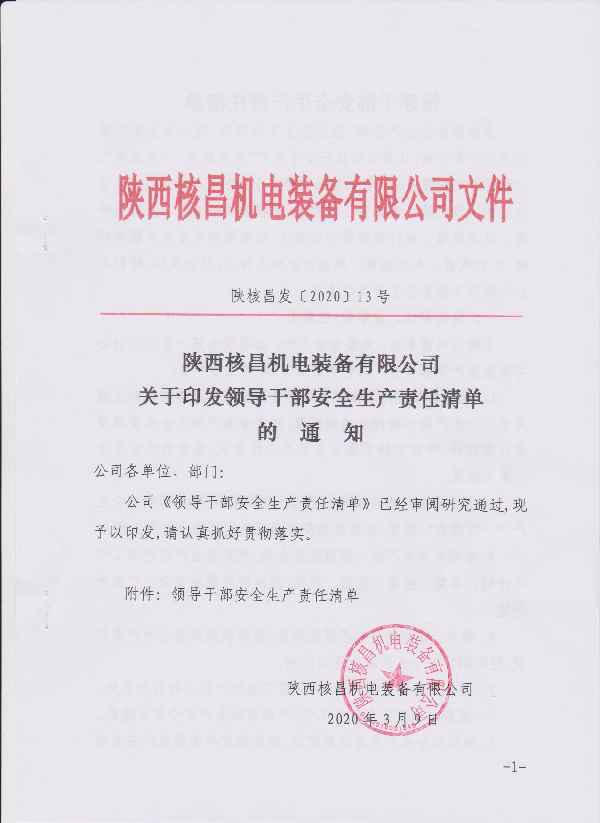 陜西核昌機(jī)電裝備有限公司關(guān)于印發(fā)領(lǐng)導(dǎo)干部安全生產(chǎn)責(zé)任清單的通知